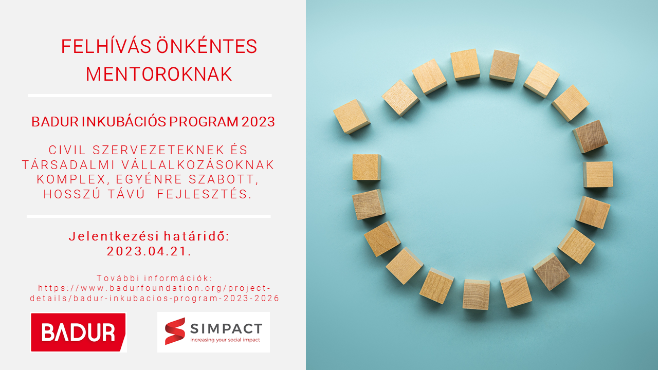 A Badur Alapítvány társadalmilag elkötelezett kezdeményezések számára Badur Inkubációs Program 2023-2026 néven új fejlesztő programot hírdetett. Szakmai partner a SIMPACT Kft.